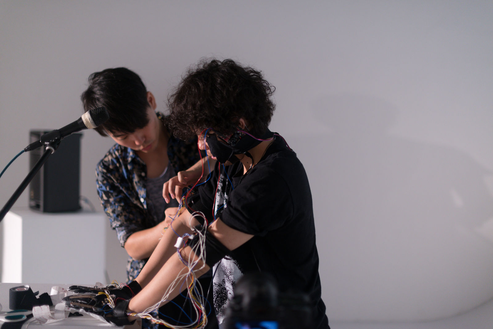 In July 2013, Ryo Fujimoto published a live LeapMotion performance onto Youtube, which caught the attention of Eddie Lee. Eddie contacted Ryo, discovered that they shared an interest in audiovisual technology, and decided to collaborate. Takuma Nakata joined the project to direct the performance and to build custom hardware that Ryo Fujimoto would use during the live event.