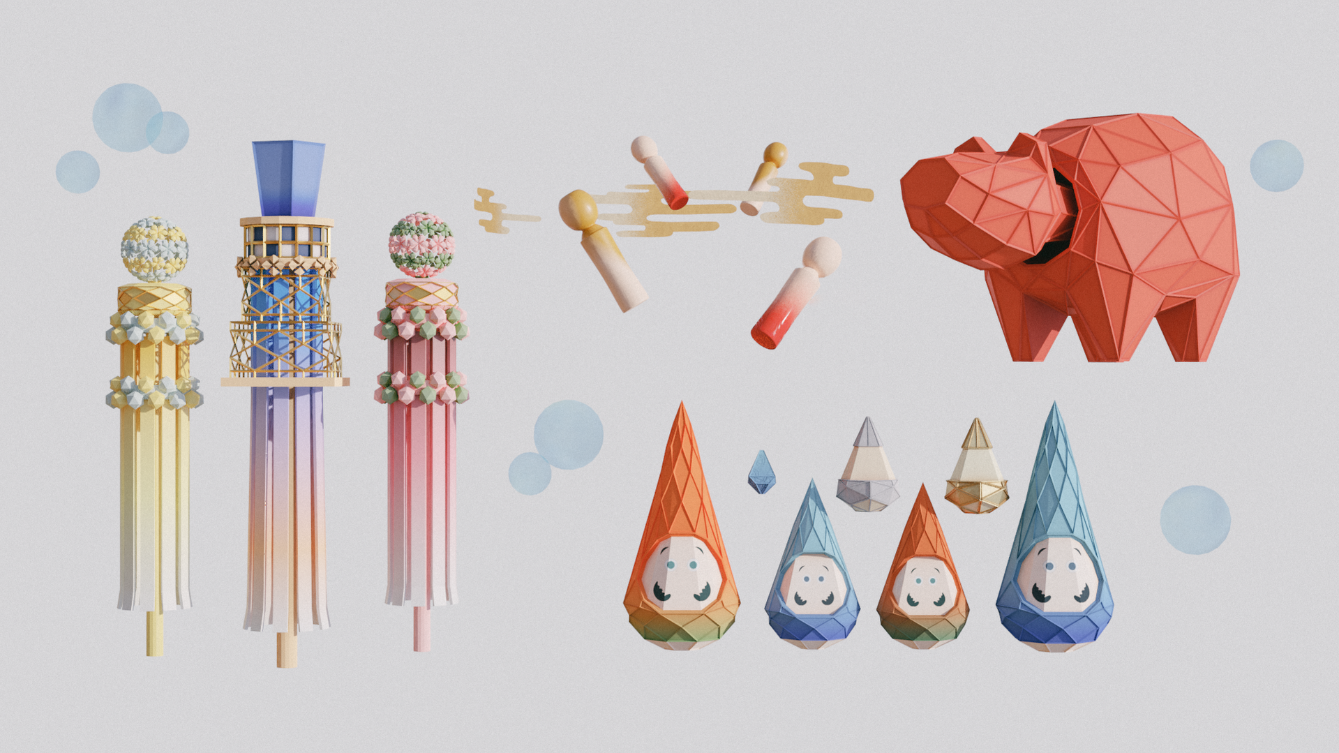 We then researched motifs from the traditions of the Tohoku Area with the meaning of exorcism against today's coronavirus, and designed them in 3D with pop light color for children's to believe in their bright future.